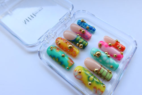 A vibrant handmade press-on nail brand that combines playful creativity with luxe quality. Each set is thoughtfully designed to bring bold color, trendy shapes, and premium finishes straight to your fingertips—effortless glamour without the salon. Perfect for the fashion-forward and self-expressive, our nails make every mani moment feel fun, fresh, and fabulously luxe.